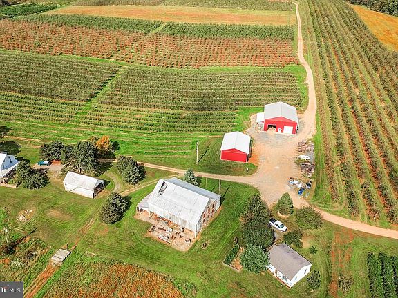 Established fruit farm for sale in Upper Adams. 134 acres featuring 2 rental homes: 1- Two Story Farmhouse, 1458 sq. ft.. 2- Rancher, 780 sq. ft.; 46X60 Bank barn, pond, 34X40 equipment shed, 48X56 shop & carriage house. Fruit trees/orchards include the following apple varieties: Golden Delicious, Honey Crisp, Gala, Yorks, Ginger Golds, Red Delicious & Fuji. Apple yield 800 bushel per acre. Tillable acreage includes corn & soy beans. There is also several orchards offering peach & cherry trees, and other varieties of assorted fruit trees & grapes for the fresh fruit market. AMAZING PANORAMIC VIEWS! Entire parcel is zoned "Single Family Residential" - zoning allows for the potential of sub-division and the development of single family homes.