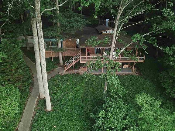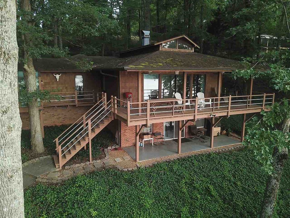 Lake Bowen's best place for retreat! Beautiful waterfront home with gorgeous views of the lake and mountains. Deep water & very quiet,on a dead end street. Convenient to I-26 exit #10, close to NC & mountains; Dock with boat lift (new cover will be installed). Dock has been resurfaced. Ample parking. Nice walkway to water. All nestled in the woods with a lot of shade; Instead of grass, ground cover ivy was planted! Extraordinary home with a lot of character. Very unique master bedroom, with a glass wall facing the lake. two closets, one with a huge window. Master bath has very unique design with a door to the outside deck. Huge living room, kitchen, dining room combination, with one side completely glassed, with 22' raised ceilings, with glass features. Nice walk in area from garage with 2 closets & enough space for sofa and desk.Lower area has media area with 1 separate bedroom with built in desk. 3rd bedroom has wall & doors that were removed but can be restored; third bedroom has a door to the outside. According to owners records, original part of home is cedar siding, with guarantee for 99 years. Covered porch/patio could be easily converted into a sunroom or screened porch. Quality craftsmanship shows everywhere. Shop is 1500 square feet with 2 sides covered. Taxes are based on Homestead Exemption.
