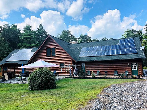 This is the get away you've been looking for!! Log Cabin Home on 30 plus acres of privacy and peace. This home offers 3 bedrooms, 2 bathrooms, loft area, basement and a two car garage. The solar panels are a huge savings with electric. Master has en-suite bathroom and His and Her closets. The kitchen offers corian counter tops, farm sink and lots of cabinetry for storage. Gleaming hardwood floors under a magnificent stone fireplace and tongue and grove ceiling. Full home generator, central air conditioning, air filtration system and instant water heater. Come enjoy the stone patio while roasting smores on your back yard fire pit.