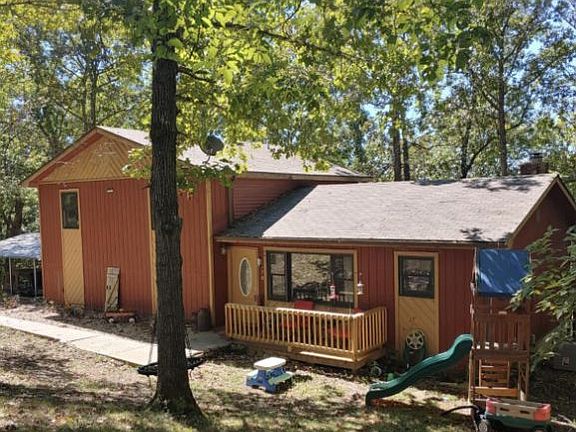 Fantastic three bedroom two bath Table Rock Lake community home with a winter lake view nestled on just over 2 acres. Great open floorplan and spacious deck for entertaining. Beautifully updated kitchen and bath. Kitchen updates include granite, undermount sink, stainless appliances and more. Garage was previously converted into a family room for a great bonus space and could be used as a large master bedroom (for a fourth bed) or converted back into a garage. With the extra large storage closet, new roof in 2018, two-car carport and less than 10min to Cape Fair Marina this place has it all! Are you ready for the good life? Call for your private showing.