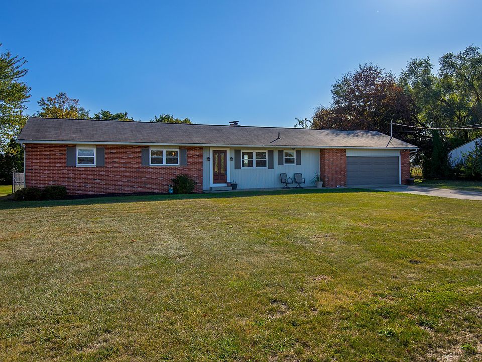 All brick ranch on a half acre in Olentangy Schools at an excellent price! Open floor-plan, newer updates throughout, newer mechanicals, newer kitchen appliances, white cabinets/granite counters, ceramic tile/hardwood floors, white woodwork/paneled farmhouse doors, double-sided wood burning fireplace. newer windows, fenced yard, Del-Co water, gas heat, 3 bedrooms, 2.5 baths, basement, 2.5 car garage. Ceiling fans in each bedroom. This is the rare one you have been waiting for, perfect for someone looking for a little bit of country with a larger lot in the heart of the suburbs with no HOA. Stamped concrete patio, fire pit, and fenced yard. Pond view from the front of this home. Schedule your showing today!