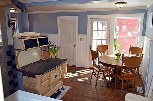 Wonderful Cape Style Farmhouse; fabulous open kitchen with extensive work and family space. Nicely modernized without losing the farmhouse charm. Full bath on first floor redone in excellent tile, also retains farmhouse qualities. First floor, two room, Master Bedroom has huge walk in closet. Very large Dining Room and Living Room with unique details and lots of natural light.Second floor has 3 more rooms and an attic where pipes were run up from below during bath renovation for a second bath on upper level. Very large attached barn for vehicles, tools or toys . Additional separate garage at top of driveway, and another wonderful building for workspace, play or Art Studio. Property also has a unique stone room in upper corner of the land. Well established veg and flower gardens, fruit trees in the rear pasture. Recent upgrades include roof, heating system, septic and 400 amp elec with sub panel in barn. A short walk to The Town Common of one of the finest villages in NE. Exc schools.