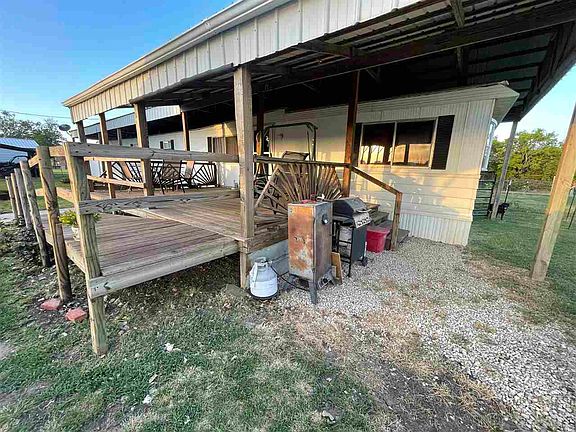 .81 acres CLOSE to the boat ramp @ Kaw! Just 6 miles from Sarge Creek Boat ramp! This 3bed/2bath trailer home has a roof structure built over to keep you protected from the weather, even while enjoying coffee on the large deck that has wheelchair ramp access! a 25x30ft building with slab floor has electric and is ready for you to run all of your projects, and the 24x25 foot metal building for storing all the toys! Large garden area and a storm shelter that can be double as a root cellar! Large mature trees!