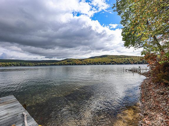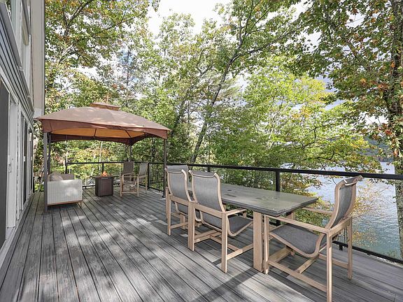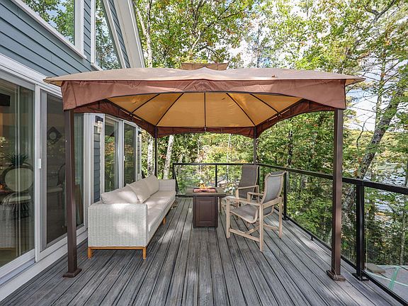 Gorgeous newer home boasting 100' of prime private waterfront on Merrymeeting Lake, one of the cleanest most desirable lakes in NH. Open concept kitchen, dining, living room is light and bright with custom windows expanding to the vaulted ceiling allowing for spectacular views. Kitchen has a great pantry. LR has a 30k BTU gas fireplace. There is a 1st floor bedroom, 1st floor bath with walk in shower and laundry, gorgeous master suite in the loft upstairs with custom sliding doors, has a walk-in closet, bath boasts rainfall shower and 7.5kW steam generator for relaxing steam showers, and has a convenient laundry chute, take in the lake and nature from the gorgeous deck or in the 6 person (2 year new) gorgeous hot tub (hot tub is negotiable) or the dock. There is an oversized heated garage with bonus room above (has a mini-split and over 400 fin sq ft (included in estimated sq ftg), would make a great home office, gym, a pool table/ entertainment room, etc. The Tesla Powerwalls stores energy and is connected to FULLY OWNED solar panels,240V swithched outlet in the garage for vehicle charging. Another asset is the Generac 10kW whole-house generator with a pigtail connection for a backup generator, helps ensure nearly uninterrupted power. Seller has gotten permit and given deposit on a 6'x40' Long Raise-A-Dock. Over 50% of the land surrounding the lake is in conservation, great for hiking, biking, snowmobiling, etc. Private, wooded, your oasis awaits.