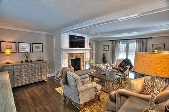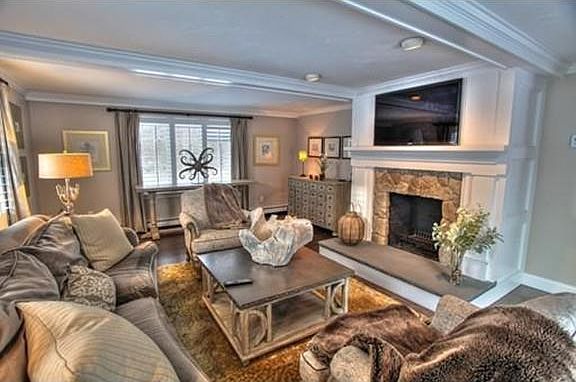Beyond your dreams! This professionally decorated, staged home offers sophisticated living in a rustic setting. Upscale Kitchen with island, Dining Room with French doors. Front to back Family Room with fireplace and glass doors to deck. Fireplaced Living Room with high-end designer wall covering. Dramatic cathedral Master with skylight, fireplace and glass doors onto balcony. Luxurious Master Bath. Wine cellar with security coded access offers state of the art humidification system. All windows throughout house have plantation shutters. Hardwood floors throughout first and second floor with tile in bathrooms. Inground gunite pool within fenced area includes cabana with sink and half bath. Dramatic, beautifully landscaped firepit area. Grounds are professionally landscaped and maintained. Too many extras to list. Across from classic New England stone walls and wooded area. Location is convenient to all amenities, schools, shopping, restaurants and commuter access.