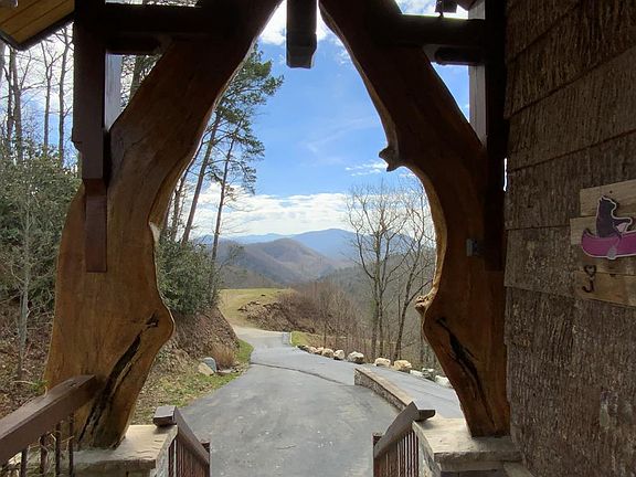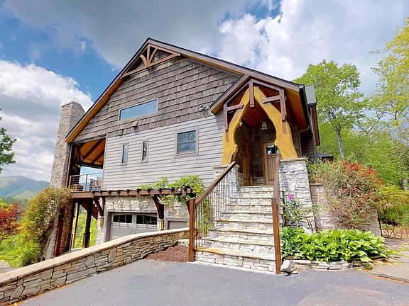 This exquisite luxury Craftsman post-and-beam mountain home, which has been recently professionally appraised, showcases unparalleled quality and charm, worthy of Architectural Digest. Located within Mystic Lands in North Carolina, this home offers breathtaking, awe-inspiring mountain views and exclusive amenities, including private access to the Nantahala River, with private lodge, a canoe club at Queen's Lake with kayaks and canoes, horse stalls, and pasture. Bordering the USFS, it provides extreme privacy with hiking and riding trails right at your doorstep. Built with high-end craftsmanship the home features premium appliances, granite countertops, custom artisan tile in the master en-suite, and two indoor/outdoor fireplaces. The main level boasts a spacious master suite with a luxurious en-suite bathroom and a convenient half bathroom for guests. The family level includes a second sleeping room with its own en-suite bathroom, plus two additional rooms sharing a Jack-and-Jill bathroom. Make snacks in the mini-kitchen, perfect for extended family or guests. Enjoy expansive viewing decks complete with hot tub and a serene Japanese garden area, enhancing the home's connection to its stunning natural surroundings. This is mountain living at its finest!