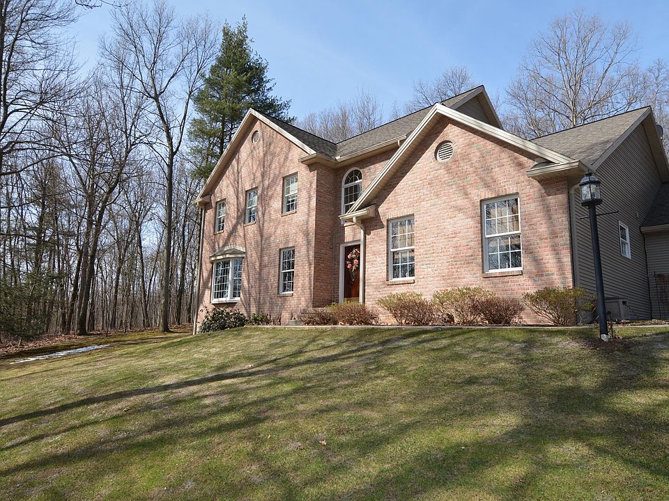 THE WOODS ARE CALLING! You can look but you won’t find a better quality built 1 owner home with 2 Master Suites and more “BANG FOR THE BUCK.” Easy access to I-80 and “no challenge” commuting to BOTH State College and Lock Haven, this Woods at Sand Ridge property is meticulously maintained inside and out. Stately 2 story foyer warmly welcomes with lots of natural light. Upgrades galore in the spacious eat-in-kitchen with Bosch stainless appliances including gas range. 1st floor laundry and 1st floor study. Walk in closets in each bedroom. Rear covered porch with skylights overlooks a peaceful park-like backyard with pond for nature lovers. Relaxation Heaven with a 20 jet Master Bath Spa shower. Tons of storage in the over sized garage and partially finished walk out basement with