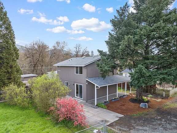 Welcome to your dream home nestled in a serene setting! Surrounded by nature's beauty, and close to the many luxuries Southern Oregon has to offer! This home is full of charm and includes 3 bedrooms, 2 bathrooms, offering 1,680 well-utilized sqft. and situated on a spacious .21 acre lot. Downstairs is the kitchen, living area, 2 beds, and laundry room. Upstairs has a very spacious primary bedroom/bath with another room attached that could be used as an office, hobby room etc. Countless updates have been made, such as a brand-new roof, gutters, flooring throughout, exterior/interior paint, kitchen countertops, just to name a few. Front yard has been wonderfully landscaped, outside has two storage sheds one w/insulation and extra wood storage for the stove! This property backs up to the enchanting Louse Creek! Entertain guests with the ample backyard space and enjoy the sound of the creek right in your backyard! Lastly, this home offers Free Municipal Water! Schedule a showing today!