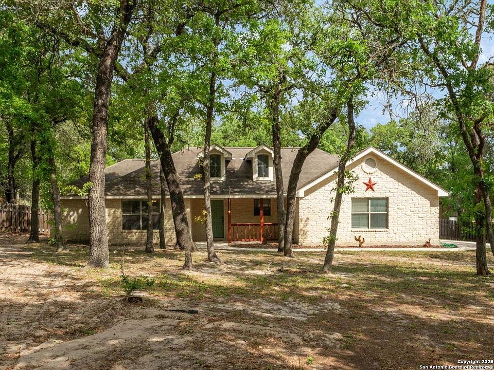MOTIVATED SELLERS! This property has it ALL in 1.79 country living, tree studded acres! Beautiful stone exterior 3 bedroom, 2 bath, 2 car garage home with cathedral ceiling, ceramic tile floors throughout, open split plan concept. New roof installed week of April 21,2025, all new HVAC units 2022, new granite counter tops 2022 as well as updated light fixtures in kitchen and bedrooms, 32X12 partially finished out portable building with AC, as well as an 8X12 storage shed. All steel covered patio. Spend those hot afternoons in your 30X18 above ground swimming pool with deck installed in 2021. Park your RV in the 64X32 raised covered cement pad with attached workshop. Minutes to downtown La Vernia. So much to see and so much to love! NOW OFFERING $5,000 IN SELLER CONCESSIONS!