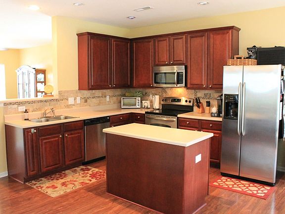 - Kitchen: Counter Tops-Formica, Cabinets-Stained, Floors-Laminate