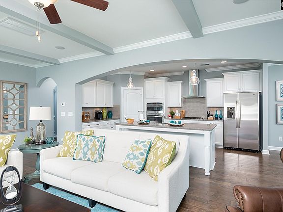 A unique opportunity to own the model home!! The Jensen is a 3 bedroom 2.5 bath craftsman style home on a great corner lot with impressive circular driveway. Warm hardwood flooring covers the 1st floor public areas and the upstairs loft. The formal dining room has a coffered ceiling with judges panels on the walls, an upgraded designer light fixture and recessed lighting. The gourmet kitchen, with built-in wall oven/microwave combo and stainless steel hood, is open the the family room. The kitchen has a lot of upgrades including a stainless steel farmhouse sink in the island, tiled backsplash, quartz counter tops, white cabinets and a counter depth stainless refrigerator. The family room has a gas log fireplace and beamed ceiling. Just off the family room is a covered screened porch with an outdoor gas fireplace surrounded by stone and overlooks the large fenced in back yard. The master bedroom suite offers a boxed ceiling with ceiling fan and master bath to die for with a huge walk-in tiled shower, separate vanities and a large walk-in closet. Upstairs you will find a two bedrooms separated by a generous loft area and a full bathroom. Full yard irrigation is included as well as front yard maintenance. This brick front home with cement fiber siding on a large lot will not last long, come by and see it before it's gone!