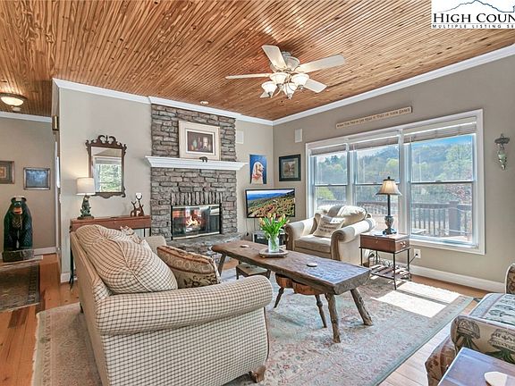 Beautiful townhome in a prime location near the New River and 10 minutes to Jefferson and West Jefferson for shopping and dining. If river fun is your desire, you are less than a half mile from the closest public canoe, kayak, and tubing access. Rent your river craft and catch a shuttle at Zaloo's Canoes less than a mile away. New River State Park is within 5 miles for hiking and more river access. This spectacular unit will impress from the start. Walk into an inviting main level with hardwood floors, tongue and groove ceiling, stone fireplace, a kitchen open to the great room, half bath, and a master suite with another fireplace. Upstairs you will find two large guest bedrooms and another full bath. The lower level boasts a versatile bonus room that can serve as extra sleeping area, game room, office, or den. There is also a third full bath and a one car garage. Over 2000 square feet of interior space provides plenty of indoor space for entertaining family and guests. Step outside on to the expansive wrap around deck and enjoy views of the surrounding woods, mountains, and river. A retractable awning provides a shady spot on sunny afternoons. Relax by the fire pit and patio outside the walk-out basement on cool evenings. Take a walk along the river, go for a paddle or swim, head to town for shopping, breweries, and dining, all within a few minutes. Large closets and the garage provide enough storage for full time living and for all of your river toys. Being sold almost fully furnished, so no need to wait to start enjoying your mountain home. Welcome to relaxation!