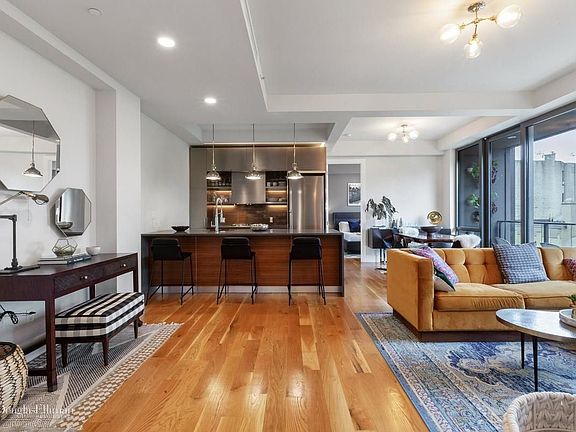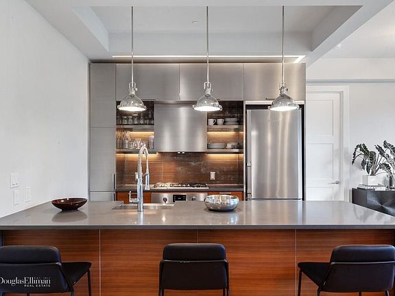 The first thing you notice when entering this awesome 3 bedroom/2.5 bath apartment is the wall of windows overlooking one of the most bucolic locations in all of Brooklyn. The light and treetop views instantly makes you serene. This loft-like home in a newly built building features beautiful hardwood flooring throughout, generously sized bedrooms, and abundant closets and storage space. The closets (master walk-in, coat closet, large laundry/linen/storage closet, and bedroom closets) have all been built-out by the owner with efficient customized layouts. In case that's not enough, there is also a storage room in the basement of the building dedicated specifically to this unit. This boutique elevator building also has a shared rooftop deck with city views and bike storage. The layout is ideal with split bedrooms and an open kitchen into the living area layout, with modern stainless steel Bosch and Leibherr appliances (the stove has a fully vented hood), well-thought out custom cabinetry and storage, chic breakfast bar area and beautiful light fixtures. Added to the kitchen after purchase the owner has installed integrated garbage collection in the kitchen, including two pails for recycling and an Insinkerator garbage disposal for significantly added convenience. The main room boasts floor-to-ceiling windows with a private terrace -- new pavers have been laid and decorative landscaping added by the owner that runs along the entire perimeter of the main room. Off of the dining area, the master suite also features floor-to-ceiling windows with a 5-piece master bath that is sure to impress with a double vanity, soaking tub, and separate shower stall. Both the master and the full guest bathroom feature radiant heated flooring. On the opposite end of the apartment are the two additional bedrooms with a full bathroom and an extra powder room for guests. Full-size washer and dryer are located at this end of the apartment for added convenience. All bedrooms in this home feature electric blackout shades, and the master suite has additional drapes all installed by the current owner. Located just one train stop away from Lower Manhattan, Williamsburg has rapidly become one of Brooklyn's most vibrant, fashionable and eclectic enclaves. Living here means being part of a dynamic community of artists, young professionals, and families who enjoy live music, artisanal cafes, vintage stores, organic eateries, yoga studios, trendy bars, cozy coffee shops and innovative restaurants. Residents at 170 South 1st are superbly placed to enjoy the Williamsburg lifestyle. A micro-cinema, Parisian restaurant, art gallery, yoga studio, juice bar, Flemish brasserie, and dog-friendly beer bar are all within 500 meters of your doorstep. Famous attractions including Williamsburg Art & Historical Center, City Reliquary Museum and Brooklyn Brewery and nighttime entertainment venues like Baby's All Right, Output and Radegast are all less than 15 minutes away. The rest of New York is easily accessible via the nearby L, J, M and Z trains and East River Ferry.