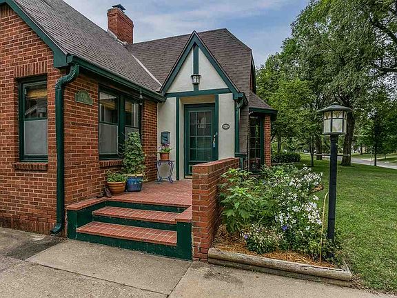 This cottage home is a true gem with many great details. The brick exterior, front porch and green trim add to this home's great curb appeal. Upon entry you are greeted into a delightful living room with wood burning stone fireplace, wood floors and a bay window. The easy flowing kitchen is nicely updated with tile floors, plenty of cabinetry, solid surface counter tops & is close to the formal dining room when entertaining guests. 2 bedrooms and a fully remodeled hall bath complete the main level. Up the staircase you will find a master en-suite with a sitting room, master bedroom with amazing walk-in closet and a full bath. The basement is finished off with a rec room with wet bar and a laundry room. Sitting on a fenced treed lot, you can enjoy the "park-like" setting from the brick paver patio.