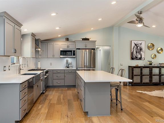 Dream come true! Main floor living in a completely renovated home filled with light! Large private lot minutes from the foothills and NO HOA! Welcome to 170 South Garland street, located in the Bonvue neighborhood, a tranquil grouping of homes on mature lots. Outdoor living paradise with enormous covered deck, hot tub, garden, flat fenced yard and outdoor lighting. Grounds are watered by optimizing use of 3" of individual ditch rights! Seller has recently spent $25,000 on backyard concrete offering parking for a minimum of six vehicles plus a detached two car garage with two separate attached sheds. Enjoy cooking in a gorgeous new kitchen complete with large island, high end appliances and a view to the backyard! Primary retreat and bath boasting luxurious finishes is on a separate end of the home from the secondary bedrooms. New roof! New Plumbing! New Renewal by Andersen windows throughout! Contact the City of Lakewood for all of the permissible uses available! Amazing opportunity to embrace owning this meticulously cared for property with pride of ownership evident at every turn!