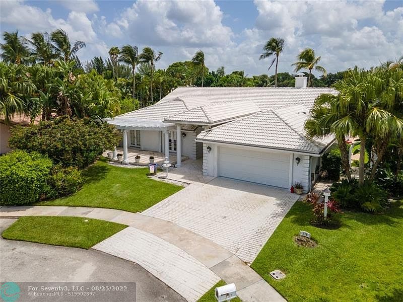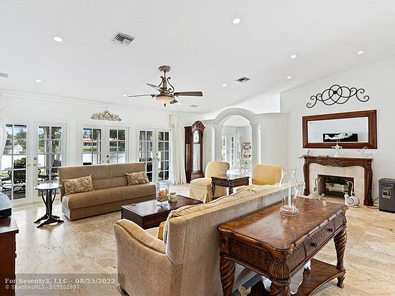 This is the one you've been waiting for! Highly desirable Jacaranda Cay home on oversized waterfront lot! 4 bed, 3.5 bath pool home on cul-de-sac w/ upgrades galore! Spacious eat-in kitchen w/ granite, stainless appl., double wall convection oven & bar area! Sep. formal dining & family rms! French doors leading to your private backyard w/ heated pool overlooking expansive & tranquil water views! Enclosed patio area, perfect for entertaining! Oversized bedrooms! Large primary BR w/ walk-in closet w/ built-ins and primary bath w/ dual sinks and roman tub & shower! 24x24 marble flooring thru/out living areas! Dual A/C system! Accordion shutters & hurricane-proof garage door! Vaulted ceilings, in-ground sprinklers, 1-yr new Hayward pool pump, generator-ready & so much more! A true must see!
