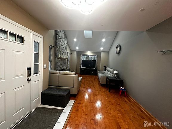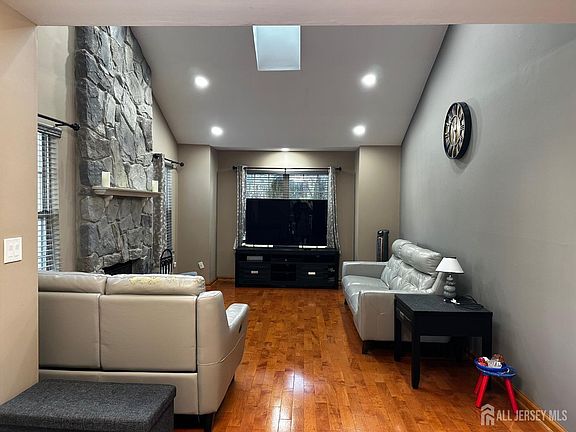 Stunning end-unit townhome nestled in the highly sought-after Renaissance neighborhood, offering 3 spacious bedrooms, 2.5 baths, an attached garage, and a fully finished basement. Thoughtfully updated by the owner in recent years, this inviting home opens to a welcoming foyer leading into a bright and airy living area enhanced by recessed lighting, natural skylights, a charming stone-surround fireplace, and gleaming hardwood floors. The separate dining room exudes elegance with detailed molding, recessed lighting, and hardwood flooring, ideal for entertaining family and friends. The beautifully remodeled kitchen features a center island, stylish backsplash, abundant cabinetry, extra storage near the windows, granite countertops, and durable ceramic tile flooring. A refreshed first-floor powder room offers a new vanity, toilet, and tasteful flooring. Upstairs, the generous master bedroom boasts hardwood floors, recessed lighting, a skylight, and a walk-in closet with a custom shelving organizer. The recently renovated master bath impresses with elegant tile work, new cabinetry, a luxurious soaking tub, and a separate standing shower. Another spacious bedroom is outfitted with durable vinyl flooring, a custom closet for optimal organization, and updated lighting with a ceiling fan. Conveniently located on the second floor, the laundry area includes a washer and dryer just four years old. The stylish, fully updated main bath features a standing shower, new vanity, elegant tile work, and modern fixtures. Additional flexible space on the second floor is perfect for a small home office or study nook. The third floor hosts a large bedroom filled with natural light from a big window, a huge walk-in closet with a custom organizer, hardwood flooring, and updated lighting with ceiling fans. Step outside to enjoy a lovely deck overlooking the backyard play area, beautifully maintained by the association. The finished basement offers versatile space with durable vinyl flooring ideal for an entertainment center, playroom, home office, or more. Additional highlights include ceiling fans and lighting in all bedrooms, a washer and dryer just four years old, a one-year-old refrigerator, and a 4-year-old HVAC system. The attached garage is equipped with an EV charging station for modern convenience. Ideally located directly across from the community swimming pool, with easy access to Routes 130 and 1. Nearby shopping such as ShopRite, dining options, and a quick 10-minute drive to Jersey Avenue or New Brunswick train stations make commuting to New York City effortless.