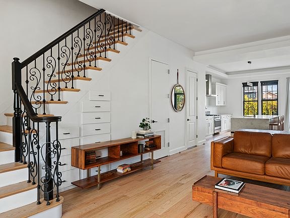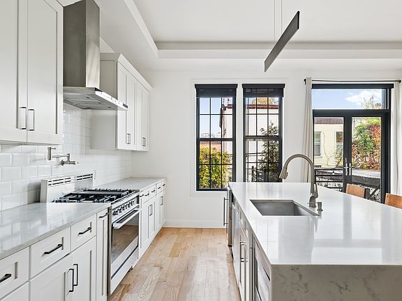 Flexibility to be furnished for $9,500 Step into this Brooklyn gem at 170 Schaefer Street. This stunning 2-family brownstone, nestled on a serene, tree-lined block in the heart of vibrant Bushwick, offers a harmonious blend of classic architecture and modern comfort. This townhome can be rented furnished or unfurnished. Residence 1 spans multiple floors and boasts four spacious bedrooms and two and a half bathrooms. The south-facing primary bedroom is a tranquil retreat, featuring tree-top views from a private balcony, a large walk-in closet, and a stunning en-suite bath. This bathroom is finished in bright white marble with double showers and a soaking tub, creating an oasis of relaxation. The remaining three bedrooms share a second full bath, which is generously sized and offers ample closet space throughout. The kitchen is a chef's dream, designed for both functionality and beauty. It features modern stainless steel appliances, including a 6-burner stove, wine cooler, dishwasher, and double-door refrigerator. With white floor-to-ceiling cabinetry, quartz and Caesarstone countertops, and brushed brass hardware, the space is both sleek and stylish. The open layout allows for casual dining around the kitchen island, while the formal dining room offers a perfect space for hosting dinner parties. For more intimate meals, enjoy dining outdoors on the private roof deck, which offers stunning views of the Manhattan skyline, or in the shared paved backyard. The home's living areas are filled with light, thanks to soaring 10-foot ceilings and large arched bay windows. Elegant hardwood floors flow throughout the space, contributing to the home's warm and inviting atmosphere. The combination of natural light, classic design elements, and thoughtful modern updates makes this home feel both expansive and cozy at the same time. Located in the heart of Bushwick, you'll be surrounded by a vibrant community, trendy shops, and world-class dining. With easy access to public transportation, commuting to Manhattan is a breeze. Schedule a viewing today and discover the allure of 170 Schaefer Street.