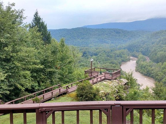 Million Dollar views with this property! Don't miss a chance to see this beautiful home with a cabin feel on over 50 acres. 2 bedroom, 2.5 bath home with a family room, living room, den and small play room. Huge deck to watch the sun set. Front porch that overlooks a large cleared field. There is also a deck that over looks the river and mountains and a running stream on the property line. Property has endless opportunities. You need to see this property to really appreciate it.