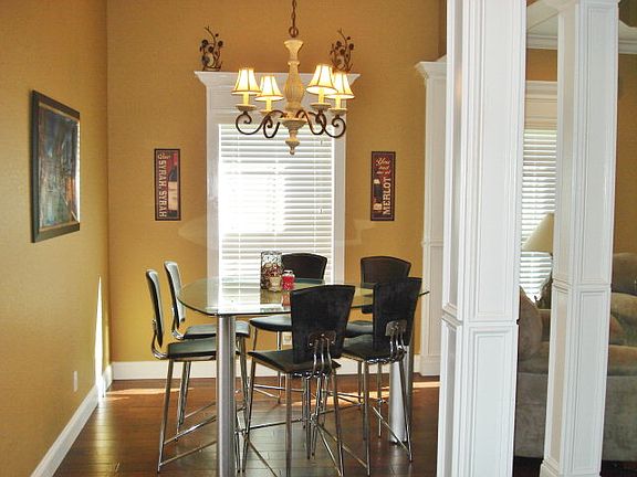 GREAT STARTER HOME! This 3Bd/2Ba home has an open floor plan and lots of windows to make this home feel even more spacious. Upgrades include crown molding, specialty ceilings, specialty window molding, and hard surface counter tops. Floors are hardwood, tile and carpet. The separate dining roon is accentuated with beautiful columns. Custom cabinetry and plenty of counter surface make the kitchen a place where you will want to cook. The bright master bedroom includes a master bath with a jetted tub and separate glass enclosed, tiled shower. Outside enjoy the nice deck that overlooks the private backyard. Garage and laundry room are other features that make this home one you don't want to miss. Call today.