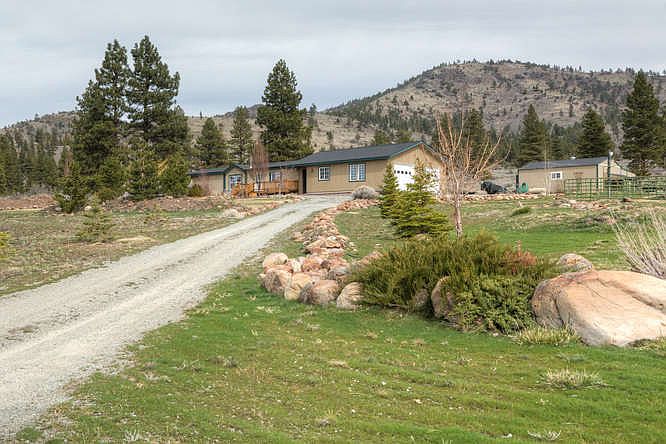 Magical setting 360 degree panoramic views of Sierra Valley and surrounding mountains. This delightful home backs to open Forest Service lands with total privacy. Great outbuildings; corral; fencing; work shop; fruit trees and lush flowers. Surround yourself with total nature and amazing views as property is set well back from street. Well maintained home with new garage built beyond requirements. Insulated with oversized doors and windows. Sierra Brooks neighborhood, club house and private camping.
