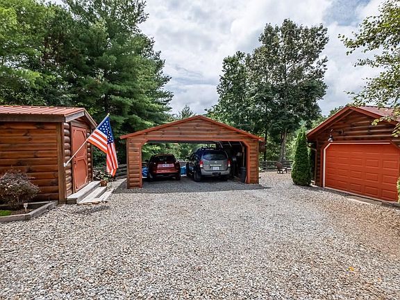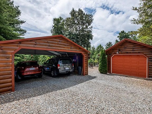Simply Stunning Custom Log Sided Home! From the moment you arrive you will appreciate the one level living floor plan with open concept living dining area, cathedral ceilings, wood flooring,and a gas log stack stone fireplace. Just off the family room is a custom 10x24 sunroom to enjoy the mountain views, and the butterfly garden. The Master bedroom is warm and inviting with walk in closet and a amazing master bath with double sink vanity and walk-in tile shower, down the hall is a second bedroom and full bath with laundry. Need to work from home? No problem here... 2 office spaces and FIBER OPTIC internet. Outside has 2 car carport, storage building, fire pit area, raised garden beds.