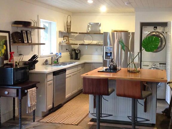Furnished 1 bedroom loft, 1 bathroom cabin. Nestled among tall trees providing privacy. 3 miles from the crossroads. Golf courses, hiking trails, waterfalls, shopping and restaurants within 5 minutes. Waterfalls within walking distance. Rustic/modern decor. Illusion fireplace in living room. Nicely equipped, modern renovated kitchen with glass top electric stove. Uncovered patio with wood burning fire pit and grill. Owner lives on the property in the house next door. Tenant will have space for parking. 2 people max. Includes water. 6 months+ lease, renewable plus security deposit (1st/last month) $1,300/mo + utilities *There are 11 steep steps to the loft, pictured* Owner pays for water. Tenant pays for all remaining utilities. No smoking allowed. Dogs allowed with owner approval. Parking on site. We will start with a 6-month lease, which is renewable. First and last month's rent due at signing.