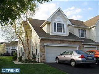 Great rare find in Warrington Hunt with a 2-car garage and an end unit location. Great neighborhood in award winning Central Bucks School District. Generously sized rooms throughout. Kitchen has upgraded Cherry Cabinets, granite countertops & backsplash. First floor offers open and spacious living at its best with access to large deck off kitchen area and half bath. Professinal finished full basement for recreation. Second floor includes large main bedroom and bath, two other bedrooms and laundry. 1st & 2nd floors have 31/4x3/4 red oak hardwood and complete house freshly painted. New roof (total $60,000 upgrades).