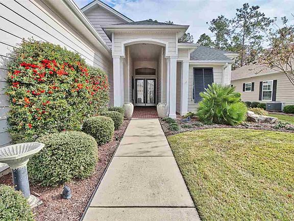 Be prepared to fall in love with this LaQuinta model home, which shows like a model with all its tasteful amenities and upgrades, in the sought out Seasons community. A columned covered entry with brick tile floor and beautiful double etched glass door with arched transom beckons you inside. From the Foyer one will first take note of the upgraded wood flooring which carries throughout the entire home. The Living Room enjoys a 42??? gas fireplace with wood mantel, slate hearth and is surrounded by custom built-in shelving and cabinetry. This room features a high ceiling with a tray ceiling and chandelier. The massive French glass Lanai doors with transoms, located here definitely make a statement. Off the Living Room the formal Dining Room also features tray ceiling with chandelier, high hat lighting and opening to Foyer. The Living Room French doors lead to a finished Lanai with E-ZBreeze windows, tile brick flooring, two ceiling fans and door, which opens to the paver patio tastefully designed to take in the peaceful, wooded back drop. The Kitchen with its upgraded wooded cabinetry, with accent moldings and hardwood, upgraded granite counters, stainless steel appliances (new 2017), tiled backsplash will be a joy to cook in! The Kitchen also enjoys a walk-in pantry, breakfast bar, high hat lighting and is made bright by the adjacent Breakfast Room with bay windows and transoms. The Kitchen and Living Room has access to a hallway with a large closet and Powder Room with granite topped vanity. Continue on to a Den/Office with built-in desk and cabinetry. Next is the second Bedroom with double door closet, ceiling fan, high hat lighting and its own private full Bath. Here the full Bath has tile flooring, double granite topped vanity, shower over fiberglass tub, linen closet and a glass block window. Also located in this area is the Laundry Room with built-in cabinetry, stainless steel sink with granite top, tile floor and large closet. The Master Suite entered from the Living Room, features tray ceiling, ceiling fan, high hat lighting, windows with transoms, a hall with two separate upgraded walk-in closets and leads to the Master Bath. The Master Bath has tile flooring, two vanities with granite counters ??? one with makeup area, soaking tub with tile surround and glass block window and custom window treatment and private water closet. There is also a large custom tiled walk-in shower with seat and multiple showerheads. The two car Garage with barn-like door has a keyless entry pad, finished floor, shelving, utility sink and attic access. Upgrades include (but not limited to): a 2 foot extension has been added to Garage, Breakfast Room and Lanai, R-15 insulation, crown and wide base moldings throughout, Plantation shutters and custom window treatments, seamless gutters and a 2-zoned Honeywell HVAC (replaced 9/2018) with gas furnace. This well cared for home, both inside and out, is ready for you to just move in and call it yours and start enjoying all that Seasons has to offer as well as near-by beaches and so much more! Seasons features a fabulous Clubhouse with indoor and outdoor pools, gym, art room, meeting areas, outdoor fireplace, tennis, Jacuzzi, card tables, employs a Lifestyle Director and is only a short walk or golf car ride away! One also can enjoy access to Wilderness Park, a short ride down the street outside of the gate. Your monthly homeowners dues covers basic cable, Internet, security monitoring, trash pick up, irrigation, lawn care, and use of all the amenities. Come, call this beautiful home yours and begin to enjoy the lifestyle!