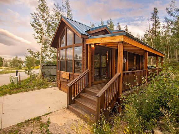 Cash cow! Approximately $40,000 gross str income, have a place to stay that puts money in your pocket. This popular vacation spot is constantly rented. Sleeps six with futon. Covered porch, backs up to forested space. About 35' to Breck, 5' to Fairplay, 2 hrs to DIA. Endless Nat. For. all around. Gold medal fishing minutes away. Clubhouse has common hot tubs, game area outdoor fireplace and party rooms. Tiny home attached to slab for stability. Special financing needed.