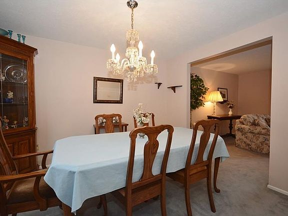 This spacious 4-bedroom Colonial is convenient to South Park recreation and amenities. A curved walkway from the level blacktop driveway leads to the covered front entry with lovely wrought iron door and sidelights. The roomy foyer has a guest coat closet and powder room. To the right of the front entry is the large living room, outfitted with wall-to-wall carpeting, neutrally toned walls, and bay window overlooking the front of the property. Neutrally toned walls with contrasting baseboard trim, wall-to-wall carpeting, and a chandelier are features found in the formal dining room. The equipped eat-in kitchen offers easy care wood laminate flooring, center island with butcher block top, and a window above the sink overlooking the rear yard. The casual seating area in the kitchen is outfitted with a ceiling fan. The electric range, dishwasher, microwave, and refrigerator are included in the sale. The wood-paneled family room has exposed ceiling beams, log burning fireplace with brick surround and hearth, and sliding doors opening to the sunroom. The guest powder room found in the foyer comes complete with laundry chute. All bedrooms and full baths are located on the upper level. The sizable master bedroom suite has a walk-in closet, dressing area, and full bath with shower. It is carpeted and has a ceiling fan. The master bath has a tiled step-in shower. The second bedroom is also quite spacious, with windows facing the front of the property, and a wide double closet. Bedroom three is found at the end of the hall. It has two double closets and windows facing the rear yard. Bedroom four has a large double closet and offers views of the rear yard. A linen closet is located in the hallway outside the bedrooms. Pull-down steps in the hallway lead to attic storage. The main bath on the upper level has a tiled tub and shower combo and wide wooden vanity. There is a laundry chute in this bath as well. The finished lower level offers a large game room, laundry, storage area, garage entry, and a door to the rear yard. The sunroom off the family room is carpeted and has a ceiling fan. Steps off the sunroom lead to the driveway and rear yard. In addition to the two integral garages, bonus parking is available in the level driveway. The rear yard is large enough for gardening, play, and entertaining. A home warranty is also offered.