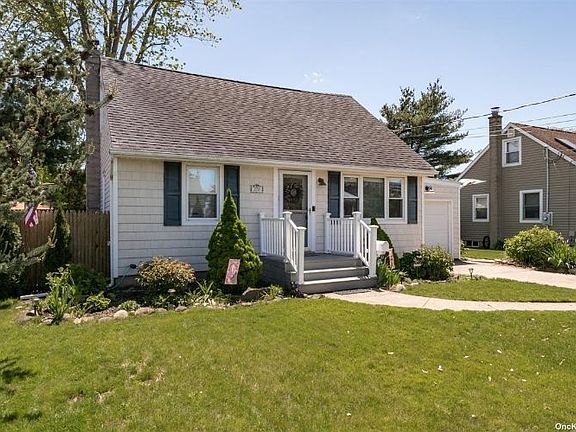 This house is mint and clean. This rear dormered Cape style home features a pretty living room open to the eat in kitchen, which is also open to the sunken formal dining room. Three Four bedrooms (possible 4th is a playroom office now) 1 and 1 2 bathrooms, newer flooring, large finished basement set up as a lounge den with bar area, laundry room, and a one year old boiler and hot water heater. This home is built for fun and entertaining with your huge deck, and four zones of wired speakers. The yard feels like paradise and includes a 8 x 12 shed with electric. Super low taxes and this close to schools, LIRR, Southern State Parkway, Sunrise Highway and shopping. This Home set in a quiet neighborhood and also features sewers and Taxes of $6, 254 with STAR.