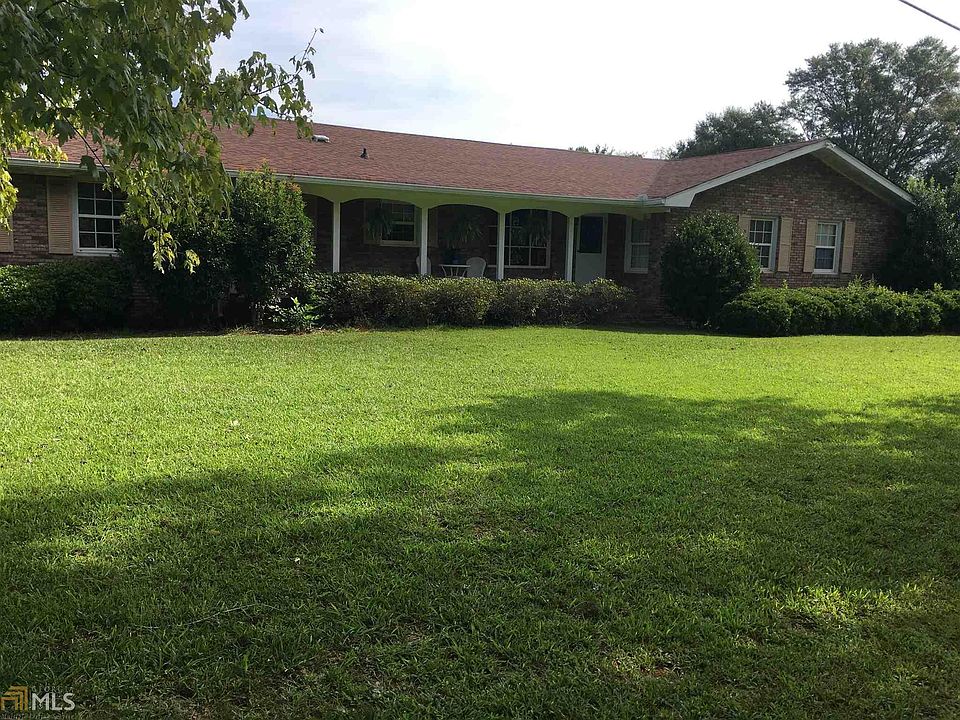Approx. 7.2 acres of open land with drive leading to nice brick home that has 3 bedrooms 2 baths, living room with rock fireplace, built-in bookshelves, glass sliding doors leading to rock patio, entrance foyer, built-in kitchen with plenty of cabinets, stove, dishwasher, refrigerator, breakfast area with bay window, breakfast bar, carpet, central heat and air, double carport with storage room, well, septic tank.