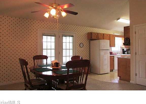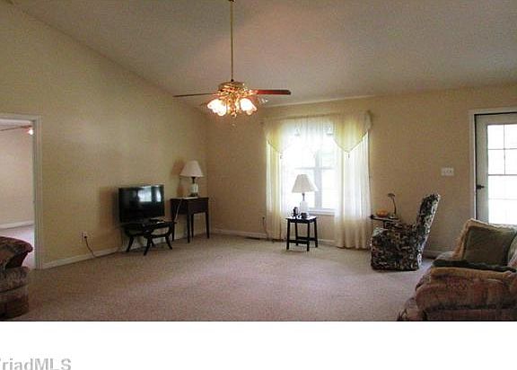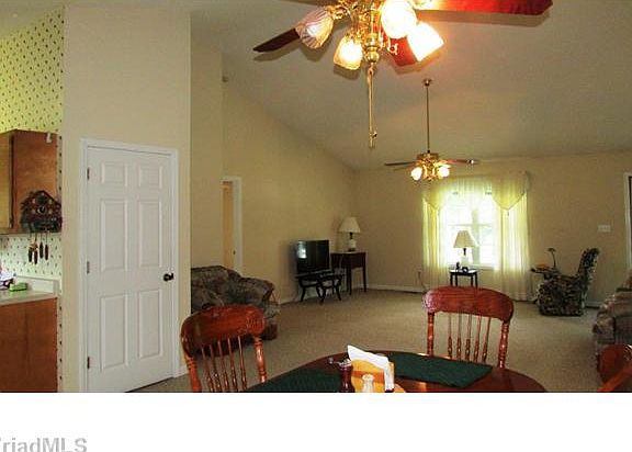 Surprisingly open living space with vaulted & cathedral ceilings. Split bedroom plan offers master privacy. Screen porch views spansive flat backyard. Basement built for finished rooms is currently storage, workshop & huge garage. Basement level playroom semi-finished. Easy drive to W-S & easier to quaint Wallburg. Simple easy living at its best! USDA Approved Location!