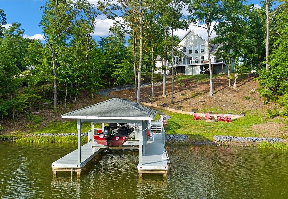 New price on this stunning waterfront retreat nestled on the serene shores of Lake Anna, VA. Located in the sought after Freshwater Estates neighborhood on the public side of the lake, this exquisite home features 4 BDRMS, 2.5 BTHS, a dedicated home office, & a versatile loft (3 BDRM septic). Step through the door to an inviting open floor plan that has been meticulously maintained & updated. The family room is highlighted by soaring two-story ceilings, built-in shelving, & a cozy fireplace, that is open to the kitchen that has new sleek granite counters. The gleaming hardwood floors have just been refinished & the house was freshly painted! Main level primary ensuite has a tile shower, jetted tub, double vanity, walk-in closet and also provides direct access to the back deck. The sunroom offers a tranquil space to savor your morning coffee while enjoying picturesque lake views. Step outside to discover a backyard oasis featuring a hot tub and sauna on the expansive deck, ideal for unwinding after a day on the water. With 150 feet of pristine shoreline in a no wake zone, you'll have ample space for waterfront activities and basking in the natural beauty of the lake. The covered boathouse, complete with an electric lift, ensures convenient and secure storage for your boat, making every lake adventure effortlessly accessible. Whole house generator, 2 car garage, paved driveway, lake fed irrigation, fire pit & extensive hardscaping. There are also 2 sheds on the property. Whether you're seeking a year-round residence or a weekend getaway, this exceptional waterfront home invites you to experience the best that Lake Anna has to offer. Short term rentals are permitted & this home would make a great investment. Great location close to local dining, Lake Anna Taphouse, groceries & more! Don't miss the opportunity to make this your next dream home & start living the lake life. Too many improvements to list here. See list in MLS documents section. The canoe by the lake, the red kayak & the multi colored kayak convey!