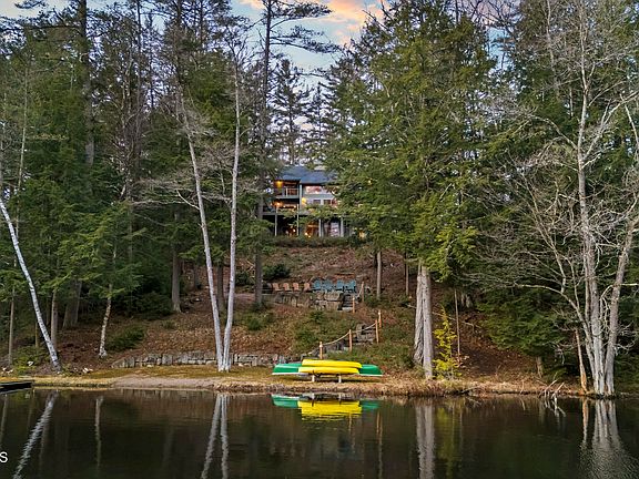 PRIVATE LAKEFRONT PARADISE! Tucked away at the end of a long driveway on 5.2 acres, this meticulously maintained home offers nearly 3,000sf of living space & 1,200 ft of shoreline on the tranquil, non-motorized, Tripp Lake. If you're looking for your very own Adirondack retreat, this is it! This home offers views of the lake from every room, expansive deck overlooking lake accessible from LR, DR, & primary suite, 2 bedrooms w/private balconies, 1st floor laundry/mudroom, add'l living space on lower level, hardwood floors, cozy fireplaces, gorgeous landscaping, & more! Spend summer days in the water & summer nights under the stars around fire-pit by the lake. Enjoy access to tennis & swim club or play golf down the street. You can have it all here, only 20 minutes from Gore & Lake George!!