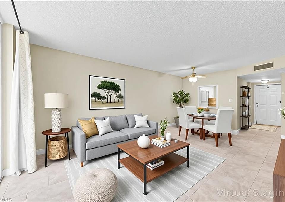 Beautiful Golf Course Views and only 2 Miles from the Beach. Renovated and First Floor 2 bed/2 bath with Western exposure. Gorgeous Sunsets from this partially furnished condo! A renovated kitchen with new countertop, ceiling fans, and new tile flooring throughout and updated bathrooms. Water and cable are included in monthly condo fees. The community amenities include tennis, pickleball, salt water & a heated pool, and car wash areas! Turtle Lake Golf Colony is conveniently located close to shops, restaurants, and a short drive to historic Olde Naples and the popular Mercato area. Golf is not mandatory.