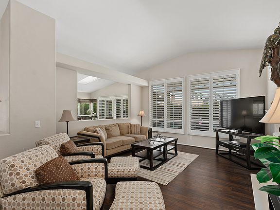 This upgraded, designer-decorated 3 BD + office 2 BA home with a private pool is centrally located in one of the most desirable locations in the Valley. Merano is one of the most sought-after communities in the desert. The upgrades include roll-down solar shades, tile & wood floors, a covered patio, a commercial misting system, and a Pebble Tec saltwater pool & spa. This backyard feels like your own private Oasis. Super cute and turnkey furnished ready for your vacation. Snowbird rate varies by the time of year and the number of months! The renter is responsible for utilities including gas, electricity, and, water. The owner is responsible for HOA fees. Pet allowed with a hold of a pet deposit. No more than two dogs. Total of two parking spaces including driveway and full access to the garage.