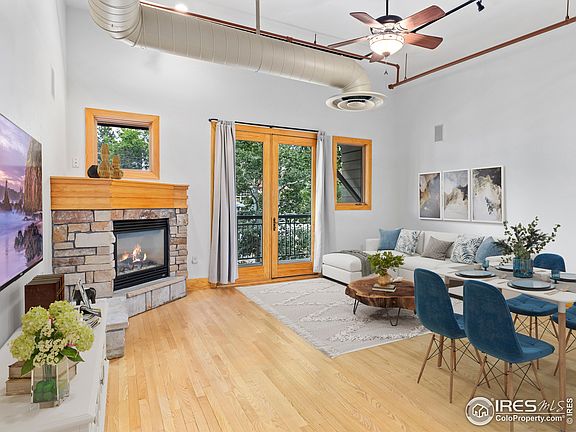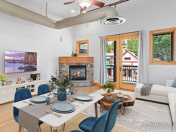 Downtown Loft condo with a cool mountain-modern design, featuring tall ceilings & exposed ductwork, lots of natural light and overlooking the activities of main street Estes Park. Private balcony puts you in the front row for parades & people-watching. Ideal weekend getaway and STR/vacation rental (ok per CD zoning) within steps of restaurants, shopping, breweries & wineries. Rocky Mountain National Park is a 5 minute drive and you can walk & bike anywhere with ease. Like-new throughout, permitted parking out back and there's even an elevator. You don't want to miss this rare downtown Estes Park offering!