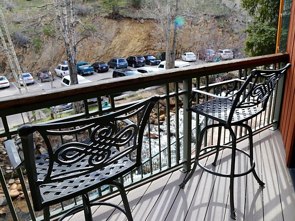Get away from it all this winter in the mountains of Estes Park with luxury and the convenience of a downtown location. The loft is right on the Riverwalk and main street; during the peaceful and quiet time of the year you'll be able to walk to shops, restaurants and art galleries on the main street of Estes Park and you're close to all the outdoor activities of RMNP and the surrounding areas. This luxurious loft 1 BR/1B condo in the heart of town has 11 foot ceilings, a warm gas fireplace, sky lights, full bath with a jacuzzi tub, granite counter tops and a private deck overlooking the river walk. You'll find that this loft is very quiet with a peaceful with a view of a hillside, you will feel miles away while relaxing in this quiet gem and if you're lucky you'll watch a herd of elk walking by on the hillside. Living, dining and kitchen are all part of an open, sunny space. Be sure to open the windows so you can hear the river rushing by! We are offering 1 month rentals, or month-to-month during the months of Nov-May. Rent includes just about everything: fully furnished, wifi, electric, water, gas, trash, parking, etc. First and last month's rent along with security deposit due along with contract signing. No smoking, no pets.