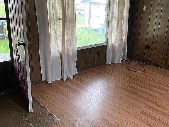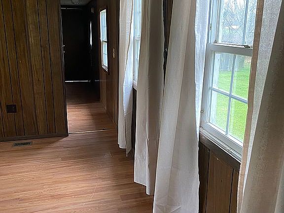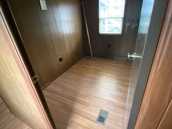2 bed 1 bath kitchen laundry room living room 1 leg bedroom 1 small bedroom pergo floors throughout, newer hot water heater and new plumbing gas furnace . Metal roof aluminium siding boro water sewage . Sold as is was rented for past 8 years . Garage detached 1/2 acre lot all for 15,000 nice 1/2 lot low taxes or u could pull out put a new one on boro utilities and lot