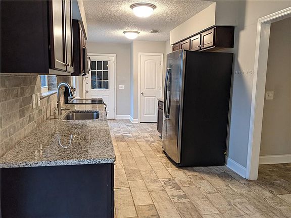 Great Brick Home, Renovated end of 2017 prior to current owner. Tiled living, kitchen breakfast nook, baths and hallway, carpeted bedrooms. Kitchen had all new appliances, cabinets and countertops at time of renovation and wall between kitchen and living was opened up. Master bedroom is on the east side of the house with a tiled walk in shower and nice walk in closet. Split bedroom plan has the other two guest bedrooms on the west side of house with a separate full bath. Owners are leaving the washer and dryer along with the hydro quad water softener. Original fireplace was removed prior to foreclosure