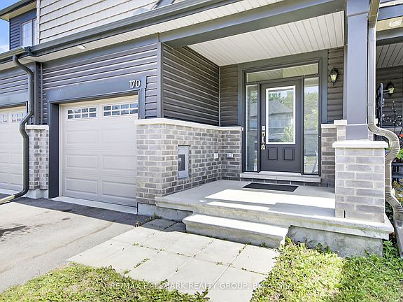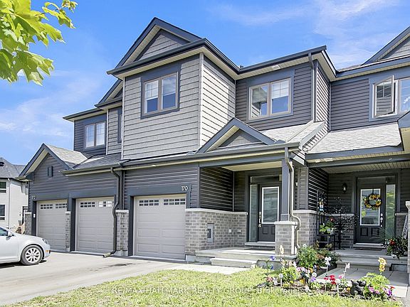 This 2022 EQ built town home is located in the sought after family-oriented neighbourhood of Findley Creek. It offers 1960 sqft living space(including the partially finished lower level of 317 Sq ft) as per builder plan. Front porch and sunken foyer welcome you into the fully open and bright main floor with 9' feet ceiling and gleaming hardwood flooring. Chef Kitchen features ample, contemporary cabinetries, S/S appliances, granite counters, island with breakfast bar, overlooking dining area and cozy family room w Cathedral ceiling. The laundry is conveniently located on the main level. The 2nd floor offers a large primary bedroom with WIC & 4 piece ensuite with oversized shower as well as two other generously sized bedrooms and 3 piece main bath. Lower level spacious Rec Rm provides extra living space for your family comfort with premium storage space in the basement. Tons of upgrades added to this home including custom blinds in all windows. Close to many amenities like shops, transit, parks. Don't miss this beautiful home! Virtual staging done for living, dining, kitchen and bedroom.