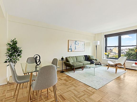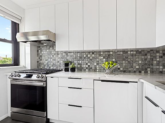 Sweeping views and beautiful renovations are the centerpiece of this convertible 2 bedroom co-op apartment. The welcoming entry with generous double closets leads you into a spacious living and dining area with phenomenal Brooklyn views. Adjacent to the living room is a bonus room, currently used as a light and bright office, but would easily lend itself to a second bedroom. The fantastic windowed kitchen was renovated just 2 years ago and features modern, stainless steel Samsung refrigerator and range, sleek white cabinetry, elegant, yet low maintenance, quartz countertops and has been thoughtfully designed for those who love to cook. A dishwasher is secretly hidden behind a panel to match the cabinetry. A smart additional pantry or bar area across from the kitchen provides extra storage. The primary bedroom, separated from the living space by a hallway with additional storage, is large enough for a king-sized bed. Expanded beyond its original footprint, a thoughtfully designed walk-in closet is outfitted with storage solutions. The bathroom has been artfully renovated and features a large shower with rainhead, slate flooring, floating vanity and medicine cabinet.