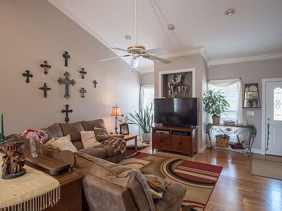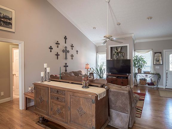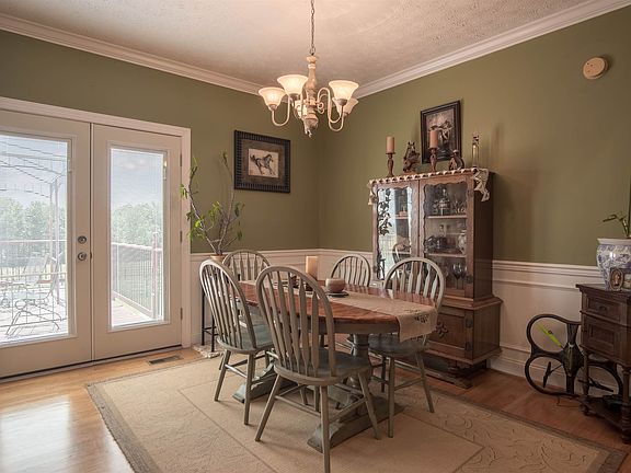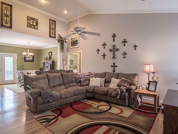 Horses will love this farm! Full brick home with partially finished basement, offers open concept, 4 bedrooms, 3 baths. High ceilings, hardwood, tile, oak cabinets, plantation shutters, central vac system. Integrated water heater and hvac 3 years old. Master bedroom offers 12x8 walk-in closet. Basement has a storm shelter & 2 car garage. 60'x40' horse barn w/ (4) 12'x12' stalls, wash rack, tack room, and lean to's on both sides. Pastures are fenced & cross fenced w/ fiberglass & electric wire. Sand arena, pond , fruit trees, and so much more to offer!