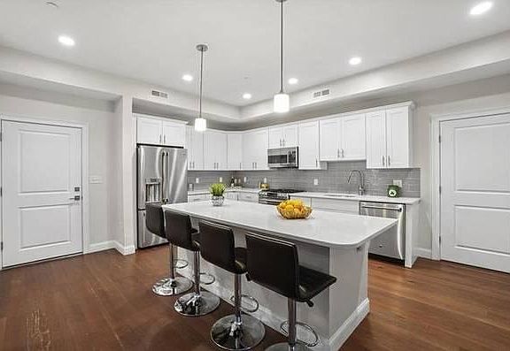 Built in 2017, this unit has 3 bedrooms, 2.5 baths, over 1900 square feet, and 2 tandem garage spaces! Located just two blocks from Broadway T station, this unit is a commuters dream. Property is move in ready with beautiful finishes, and an open concept floor plan. The oversized kitchen features a large island perfect for entertaining, and looks out to the large living room. Easily accessible from the living room is an oversized terrace. The master bedroom is a true escape, featuring both a sitting and office area, a large walk in closet, and en suite bathroom. The second bedroom is spacious with a large walk in closet, and could also be used as a private guest suite if desired. Third bedroom is a decent size and would make a great office, nursery, guest room, or kid's room. Unit features central air, laundry in unit, great storage. Building features a mail room, elevator, and bike storage on each floor. We can provide some furnishing if preferred.