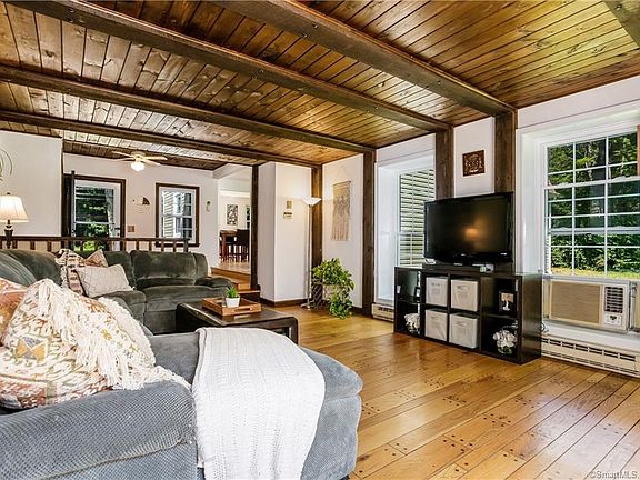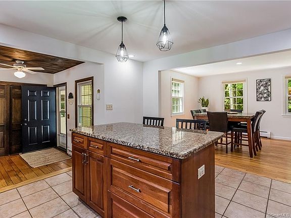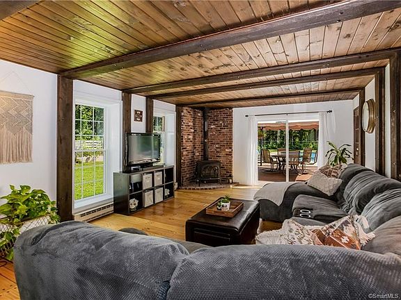 This home is set back off the road with a babbling brook running alongside the property and hardwood floors throughout. As you enter through the breezeway into the mudroom you catch a view of the backyard and pool through the sliding glass doors. The sunken living room with wood burning stove welcomes you to take in the privacy of this home during any season. Entertaining is easy in the spacious kitchen, with stainless steel appliances and granite island, that is open to the dining room featuring a wet bar. Another large, light filled living room, and a half bath with laundry round out the first floor. Upstairs, the main bedroom has walk a in closet, and a beautiful recently updated bathroom. The second full bath with large linen closet and two additional bedrooms offer plenty of storage and space. A bonus three season room with a sauna and views of the pool and yard, is another great area for entertaining. The backyard is the perfect gathering spot for any occasion with an in-ground pool and a lightly wooded, level lot. There is plenty of space outside for gardening and to enjoy the mature shrubs, flowers, and raspberry bushes. Several recent mechanical updates include new septic system, new furnace and hot water heater, new siding and doors, and new pool liner, pool filter, and pool plumbing. Marlborough has many nearby amenities yet maintains that small town charm including shopping, restaurants, and easy access to hiking trails and state parks. Owner agent.