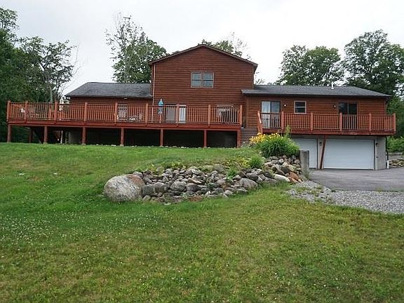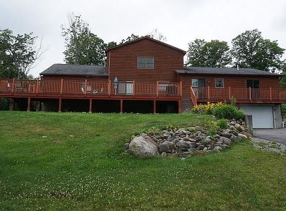 Beautiful Log Cabin Style Home with in- law apartment w/oversized 2 car garage set on 2.66 acres! SOLAR POWER is just one of the extra features this home has to offer. The main house has 2 bedrooms, one being the loft. Master bedroom with large walk-in closet, pull down attic for storage. Master bathroom with two shower heads and laundry hook ups.The loft bedroom has 3/4 bath.The main house has an open concept living room, recess lights, kitchen, dining area. Tastefully done cathedral wood ceiling & walls, pellet stove in living room,kitchen w/ slider to large deck overlooking the backyard. The breakfast bar area has stainless steel appliances (refrigerator, range, microwave, and dishwasher). The in-law was added 2005, separated by barn door has 2 bedrooms with pocket doors & adjoining bath & adjoining walk-in closet. 1 bedroom has a slider to deck. The in-law accessory unit has recess lights, gleaming wood floors, central a/c, spacious open concept living room and kitchen includes range, refrigerator, dishwasher, and microwave. The kitchen also has a slider to deck. There are two separate front farmers porches, 1 for the main house and 1 for in-law apt. The property has central vac, on demand hot water and an auto start full house generator. The garage has a workshop area, built in storage, a propane heater that has been disconnected. The walk out basement has laundry hook ups and lots of room for future living space.