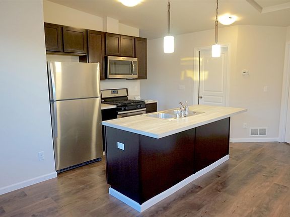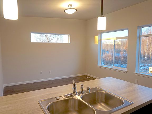 Newer townhouse style 4-plex! Minutes from Tikahtnu & JBER, Open 2-story plan with kitchen, dining, living, 2 beds, 1 bath up. Laminate flooring in kitchen, dining & living rooms, gas range, microwave/vent hood combo, dishwasher, refrigerator w/ice maker & stackable washer/dryer. First level has 1 garage, bedroom with closet, & 1 bathroom. Tenant pays Gas & Electric & Trash $35 Application/adult