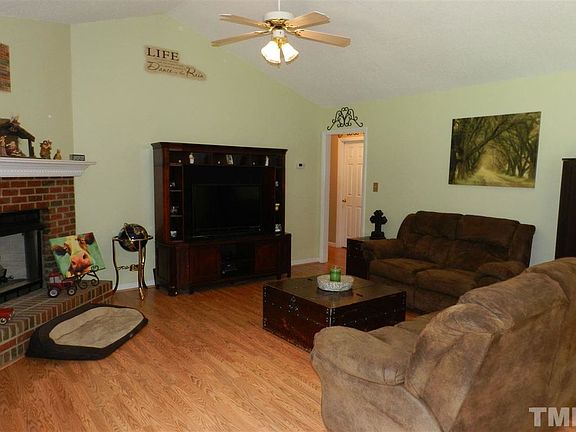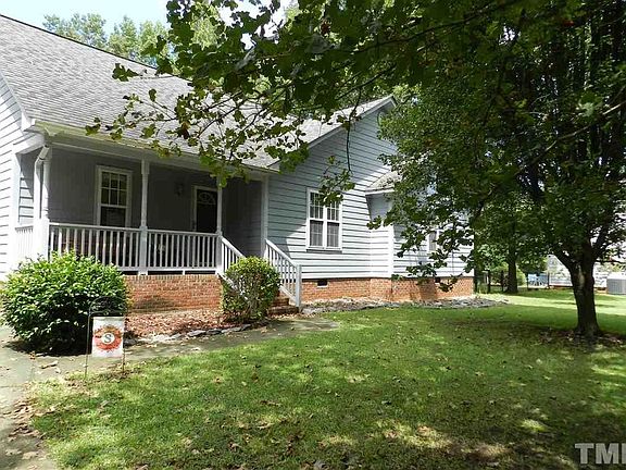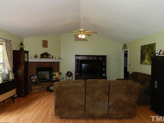 RARE FIND! Entertain your family & friends in this open floor-plan RANCH on OVER AN ACRE wooded lot. This home features a beautiful brick fireplace with gas logs, a large kitchen, spacious deck and two covered porches. NO HOA! Enjoy the large-city conveniences with a small-town feel. Approximately 30-min drive to downtown Raleigh.